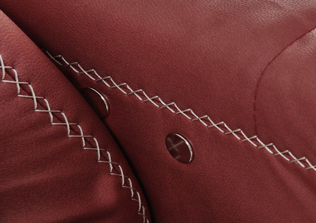 Microfaser in Lederoptik, 100% Polyester, Farbe red, Liegearmlehne, Sitz Kaltschaum, Rücken echt, Winkel-Metallfüße schwarz, Kreuzstichnaht mit Kontrastfaden beige, Sitzhöhe 45 cm, Sitztiefe 69 cm, bestehend aus: